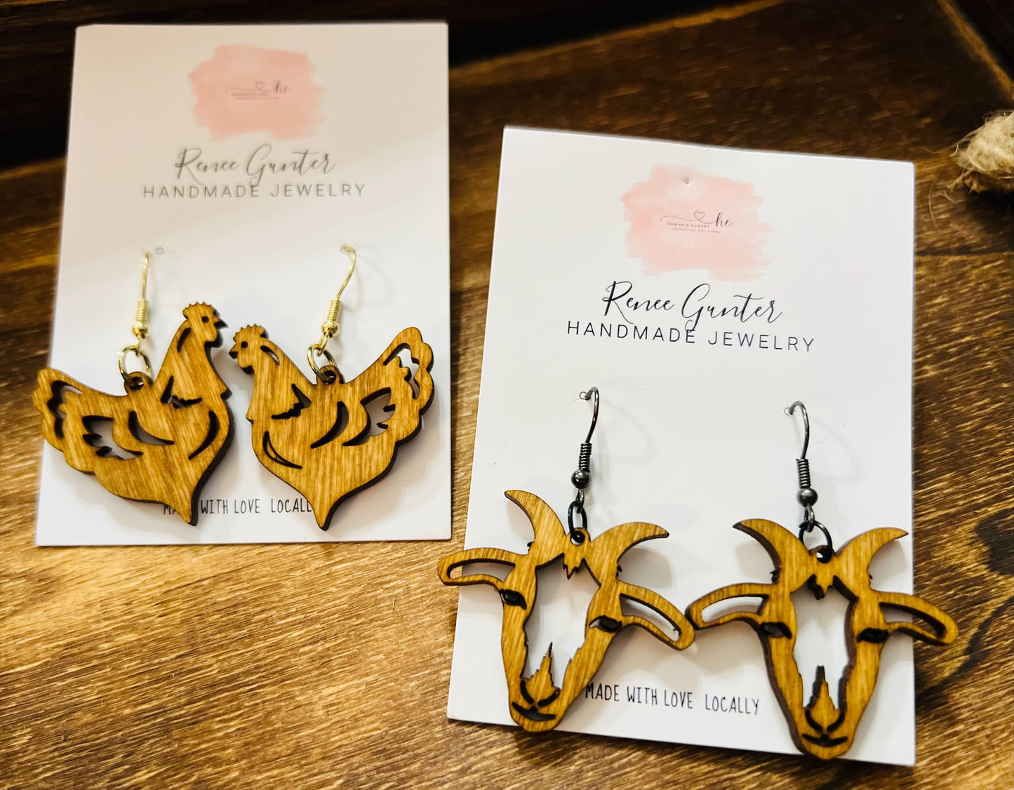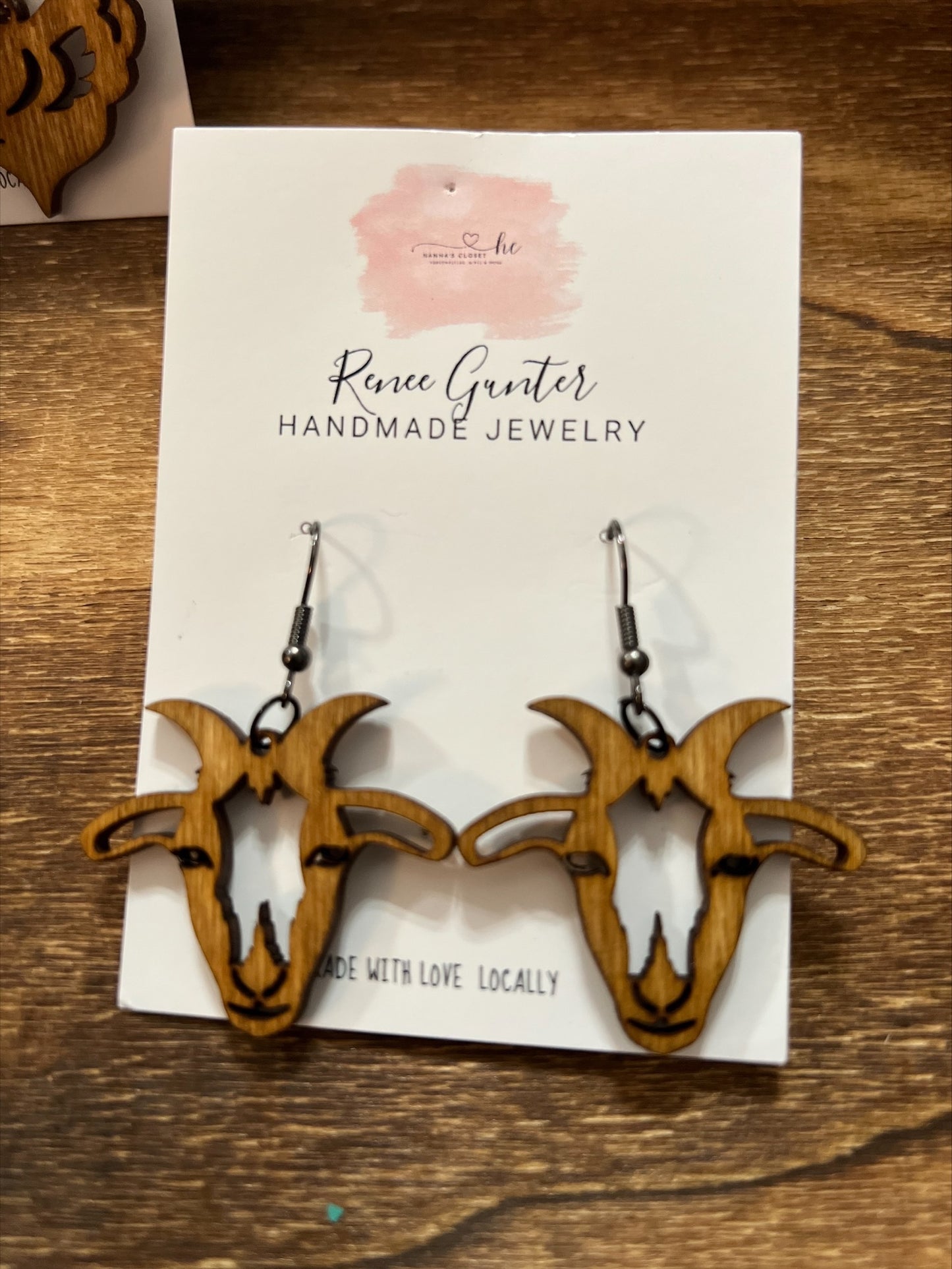 Handmade wood goat earrings.